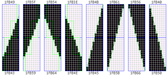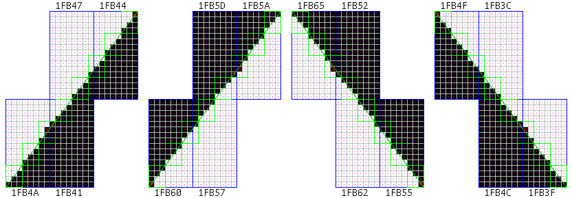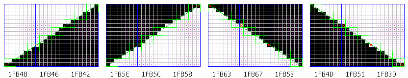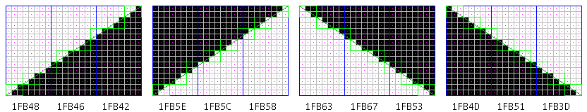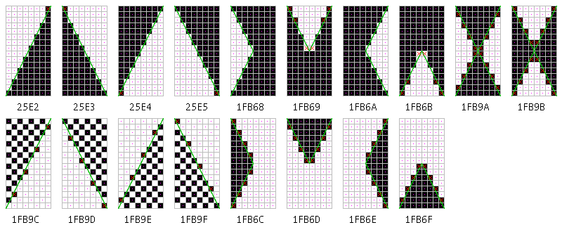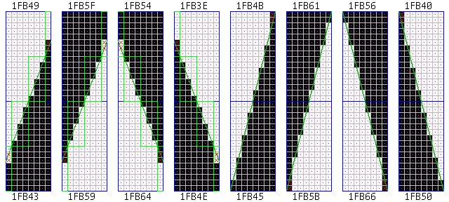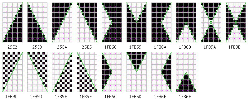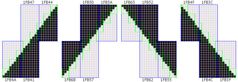 In 2023-06-03 all of EE00—F89F was 'Reserved for hacks and corporate use', but in 2023-08-29 the reserved ranges became fragmented and RebeccaRGB allocated ATH in F4C0−F4EF, which is a violation of the stability that reserved ranges were supposed to provide, and in effect, this sets a precedent that the ranges marked as 'Reserved for hacks and corporate use' no longer have any meaning and that UCSUR may potentially invade the whole private use space; the allocation in F4C0−F4EF is in conflict with non-CSUR private use allocations such as Kissinger 2's allocation of superscripts and subscripts in F4C0—F4DF (as of dev4, F4C1—F4CF are used). As a result, we are enforcing private use stability policies of our own even if it comes at the cost of CSUR compatibility. Type Design recognizes CSUR allocations only in the ranges of E000—E7FF E820—EDFF F8A0—F8FF F0000—F7FFF. Type Design will ignore all CSUR allocations in the other private use ranges which are E800—E81F EE00—F89F F8000—FFFFD 100000—10FFFD. This is a stability policy enforced by Type Design that constrains the range in which CSUR is recognized and permits non-CSUR usage of all other private use ranges without any risk of conflict with Type Design usages of CSUR characters. The range in which CSUR is recognized by Type Design may shrink but not expand, and the CSUR characters not in any stable release of a Type Design font (such as the maximum character counts in Kissinger 2 completeness charts) are not considered stable and may be removed or changed, but not to the reserved non-CSUR areas. RebeccaRGB's KreativeKorp is considered to be a subsidiary of GNU, due to RebeccaRGB contributing to GNU Unifont. This makes KreativeKorp part of a significant GNU lobbying force in software, and one instance of that lobbying are the plans to disunify 10 legacy computing characters from emoji. This is most likely in attempt to further reinforce the emoji ideology that Unicode characters may not always be purely text, which may be an attempt to allow legal claims on Unicode related data (such as text strings and fonts) outside the scope of typography, such as the Unifont memorandum that was mentioned and debunked in the Unifont criticism below. However, Unicode is intended to be used entirely for plain text, as such, all Unicode characters are considered to be text characters; therefore, characters marked as 'emoji' are not meaningfully semantically distinct from text characters. The planned disunification does not affect the long standing legacy encodings such as CP437, but it affects the newly introduced legacy encoding compatibility of Symbols for Legacy Computing. Type Design does not recognize the concept of emoji at all, and treats every Unicode character as text. The GNU lobbying however is incapable of fundamentally corrupting the Unicode standard, Unicode still enforces its stability policies. There have been other instances of Unicode being affected by lobbying, such as for the bidirectional algorithm (most notably the parenthesis update in Unicode 6.3), but it is unknown if those instances of lobbying are by GNU. • Unifont criticism: Unifont is unusable due to many design flaws as well as anti-competitive practices. Paul Hardy refused to self-promote. This is due to the anti-competitive ideology, just like with RebeccaRGB. In fact, RebeccaRGB is one of the Unifont contributors, and they are responsible for the Unifont design flaws in the slopes. The anti-competitive practices result in the overall incompetence of Unifont developers. The most important optical consideration in typography is by far consistency. However, Unifont as of 17.0.02 has the following consistency errors (not an exhaustive list since there’s way too many design flaws to find them all): • bad ascender height: ßȟβδζθλξϕ • bad cap height: ÞФἎἏἮἯἾἿὟὮὯᾎᾏᾞᾟᾮᾯ • bad x-height: ɥʞἆἇἦἧἶἷὦὧᾆᾇᾖᾗᾦᾧѱ • bad baseline: ɥʞṰḀḁ • bad descender height: ɲʃʄʅʆϱ • unslashed superscript/subscript zero in ⁰₀ inconsistent with slashed zero in 0; due to ideological reasons, this will never be fixed • `ẀẁỲỳ have inconsistent grave accent letterform than ÀÈÌÒÙàèìòùЀЍѐѝ • ´Ẃẃ have inconsistent acute accent letterform than ÁÉÍÓÚÝáéíóúýĆćĹĺŃńŔŕŚśŹźǼǽǾǿЃЌѓќ • ˙ȦȧȮȯḂḃḊḋḞḟḢḣṀṁṄṅṖṗṘṙṠṡṠṡṨṩṪṫẆẇẊẋẎẏẛ have inconsistent dot accent letterform than ijĊċĠġįİijŻżі • ˆˇ are lower than any actual circumflex and caron accents used above the base letterform in accented letters • inconsistent glyph inverses (bad slopes are also demonstrated in detail in the images below): •○◢◣🬼🬽🬿🭀🭁🭂🭄🭅🭇🭈🭊🭋🭌🭍🭏🭐🭨🭩🭪🭫🮚 ◘◙◤◥🭒🭓🭕🭖🭗🭘🭚🭛🭝🭞🭠🭡🭢🭣🭥🭦🭬🭭🭮🭯🮛 • inconsistent base letterforms: HĦ, sś, AǺ, aǻ, UɄ, VɅ, εέ, HḢ, HḪ, hḫ, WẆ, AẠ, etc. • ꟲꟳꟴ inconsistent superscript alignment than ⁰¹²³⁴⁵⁶⁷⁸⁹ᴬᴮᴰᴱᴳᴴᴵᴶᴷᴸᴹᴺᴼᴾᴿᵀᵁⱽᵂ • inconsistent triangle in ▶▷◀◁ than ►▻◄◅ (note: ►▻◄◅ are the canonical forms due to ►◄ being in CP437 and WGL4) • double line path intersection in ╫ inconsistent with ╟╢╬, and in ╪ inconsistent with ╤╧╬ • inconsistent square: ■□◫◻◼, ▪▫◽◾ • box drawing arrows unusable due to ←→ misaligned with ─┌┐└┘├┤┬┴┼╓╖╙╜╟╢╥╨╫ (note: ⎯ as opposed to ─ is not in most legacy computing platforms with box drawing arrows) Other design flaws: • superscripts and subscripts optically too small for mathematical purposes (this might be subjective, so not necessarily a design flaw, but Type Design recommends superscript/subscript black body height about